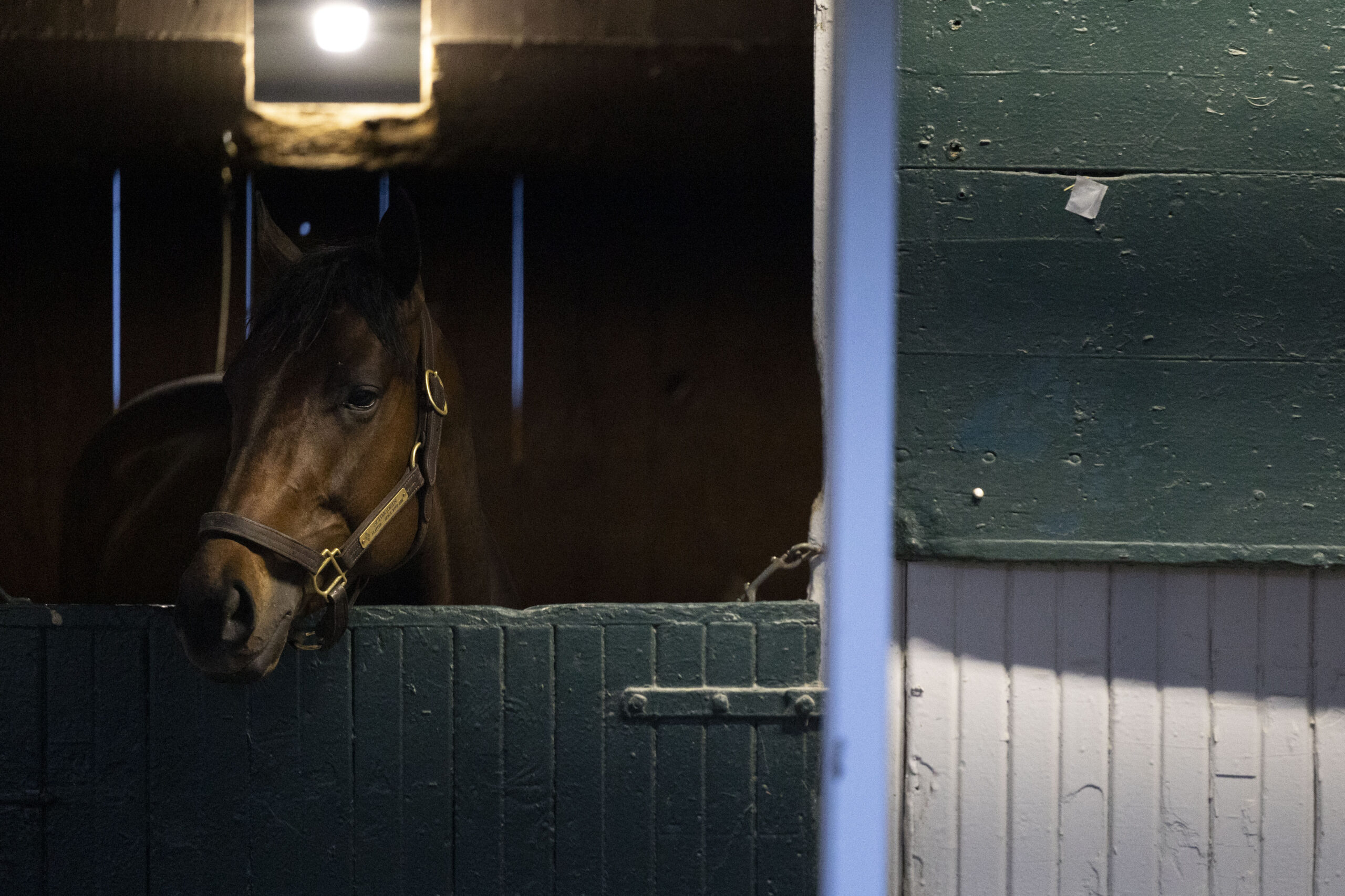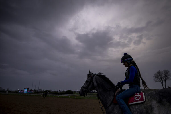 A horse is seen in the morning light during morning workouts at Keeneland in Lexington, Kentucky, on Friday, April 3, 2026. Sydney Novack/The Watchdog