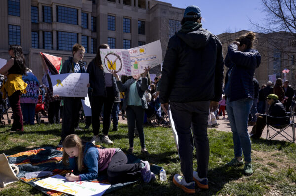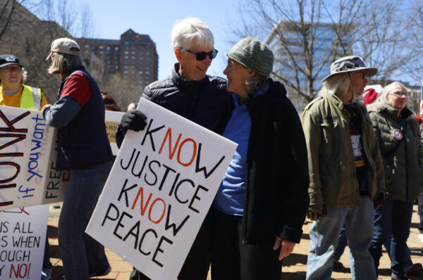 Protesters outside the Robert F. Stephens Courthouse, in Lexington, Kentucky, on Saturday, March 28, 2026. Sydney Novack/The Watchdog