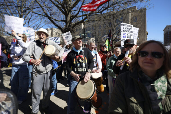 Protesters play the durms outside the Robert F. Stephens Courthouse, in Lexington, Kentucky, on Saturday, March 28, 2026. Sydney Novack/The Watchdog