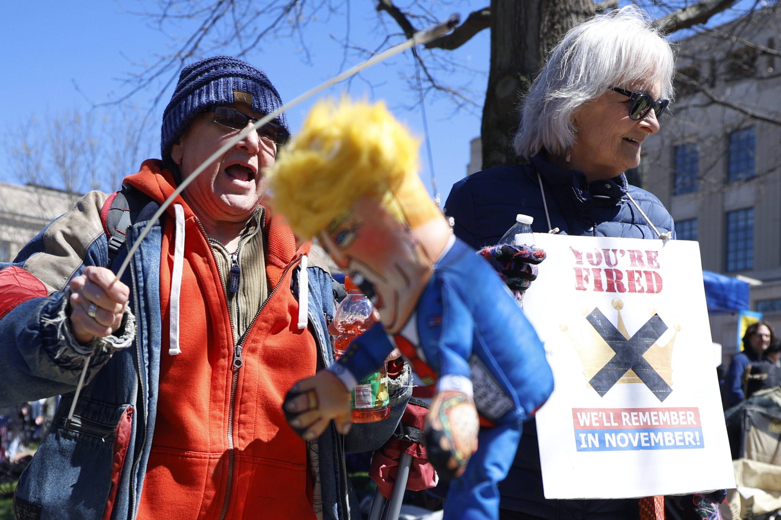 Protesters hold a Donald Trump puppet outside the Robert F. Stephens Courthouse, in Lexington, Kentucky, on Saturday, March 28, 2026. Sydney Novack/The Watchdog