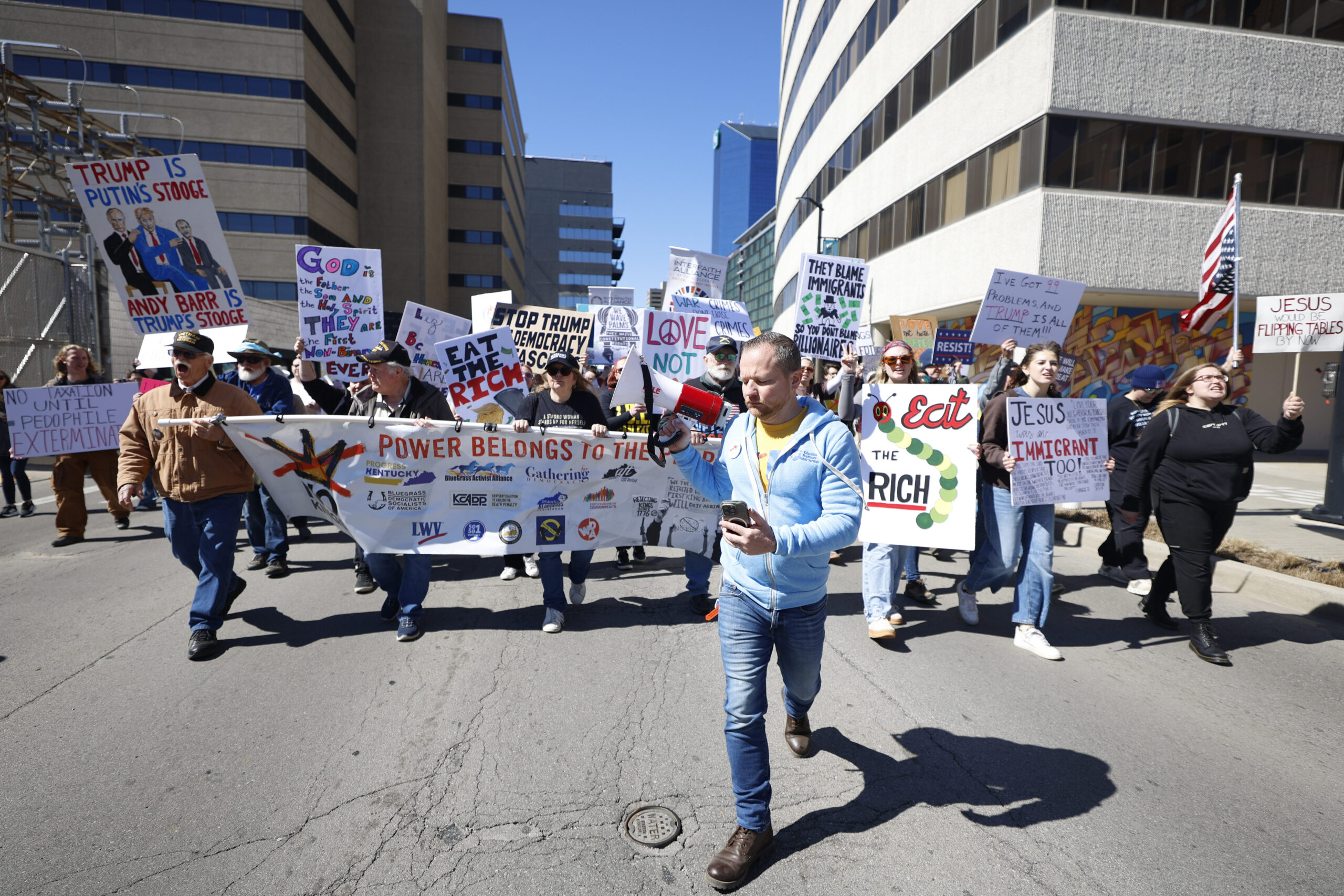 “No Kings” march down Main St., in Lexington, Kentucky, on Saturday, March 28, 2026. Sydney Novack/The Watchdog