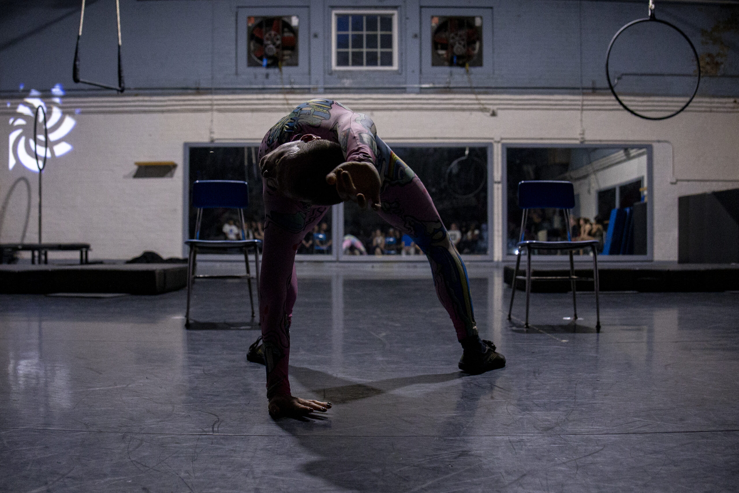 Contortionist Mason Doodle performs during the UKY Circus Cats Spring Showcase, “Dawn till Dusk” at Barker Hall in Lexington, Kentucky, on Friday, April 17, 2026. Peyton Tindall/The Watchdog