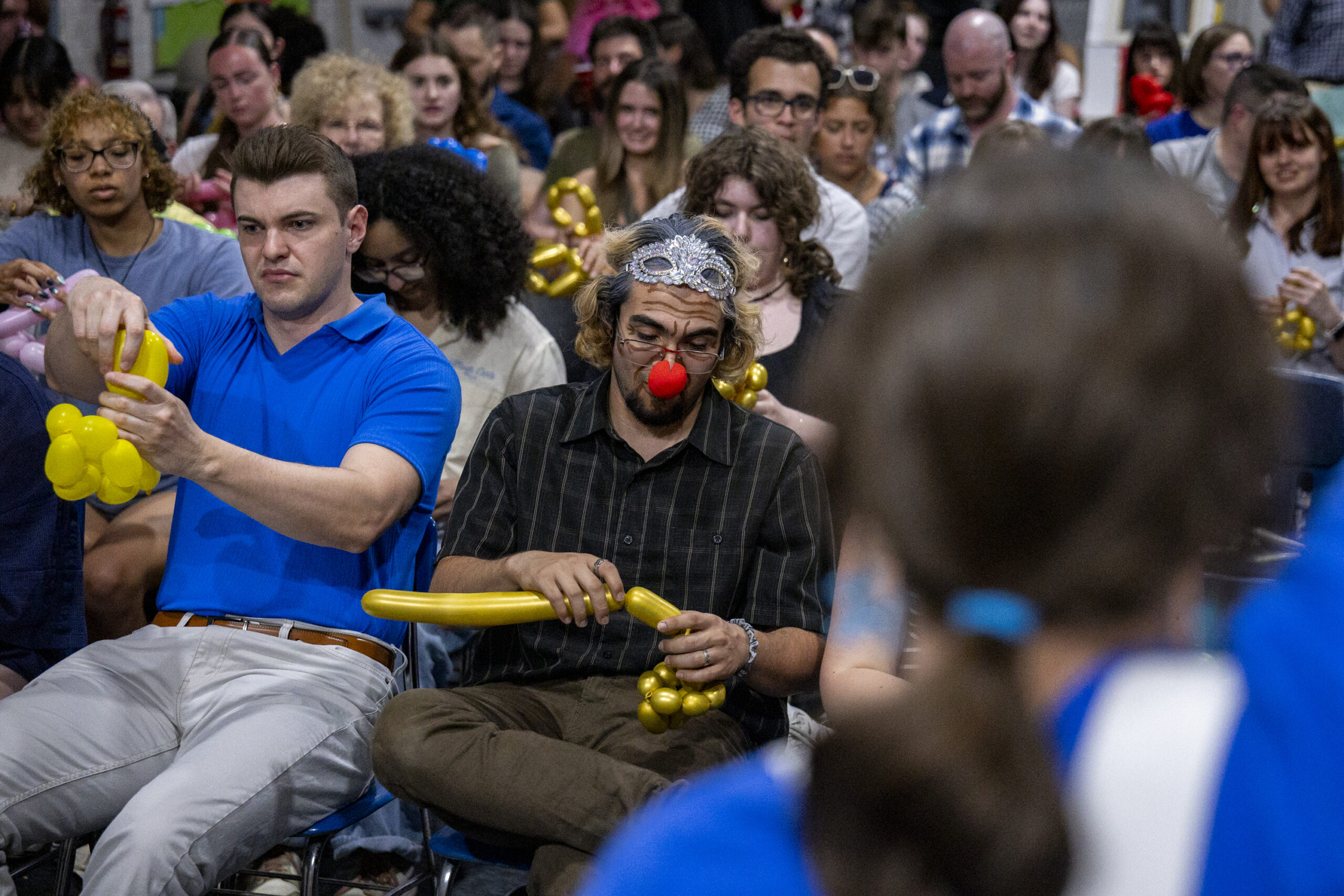 Attendees are taught how to make balloon animals during the UKY Circus Cats Spring Showcase, “Dawn till Dusk” at Barker Hall in Lexington, Kentucky, on Friday, April 17, 2026. Peyton Tindall/The Watchdog