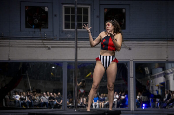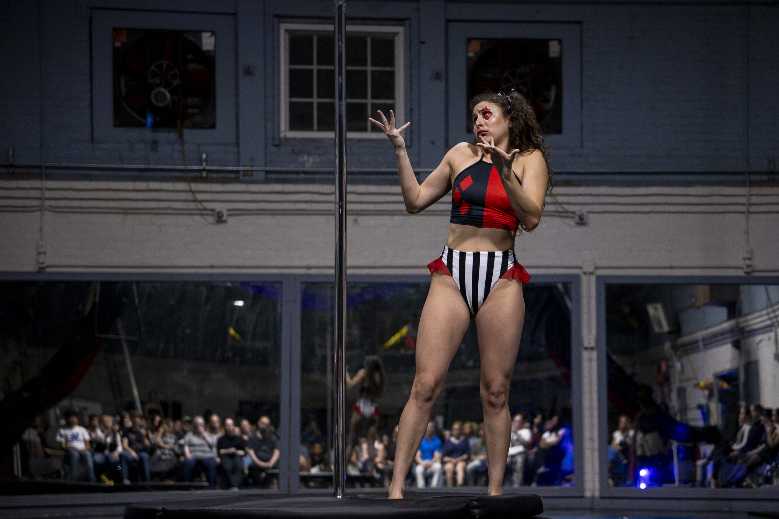 Acrobat Amber Singh performs on a pole during the UKY Circus Cats Spring Showcase, “Dawn till Dusk” at Barker Hall in Lexington, Kentucky, on Friday, April 17, 2026. Peyton Tindall/The Watchdog