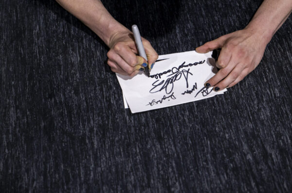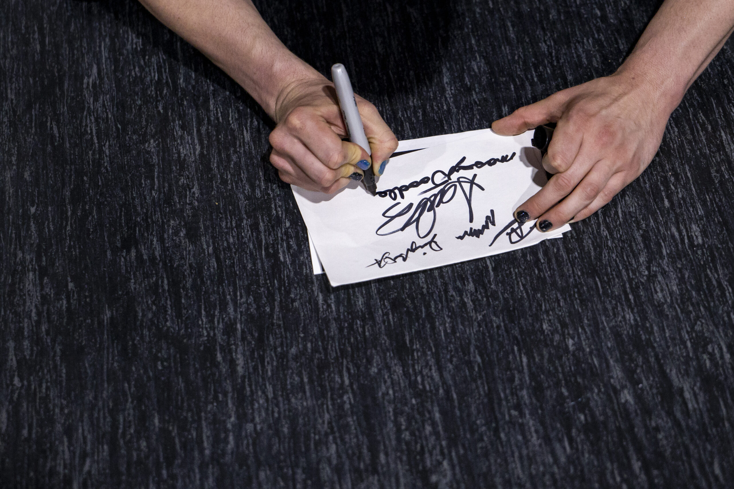 Mason Doodle signs his autograph for a fan after the UKY Circus Cats Spring Showcase, “Dawn till Dusk” at Barker Hall in Lexington, Kentucky, on Friday, April 17, 2026. Peyton Tindall/The Watchdog