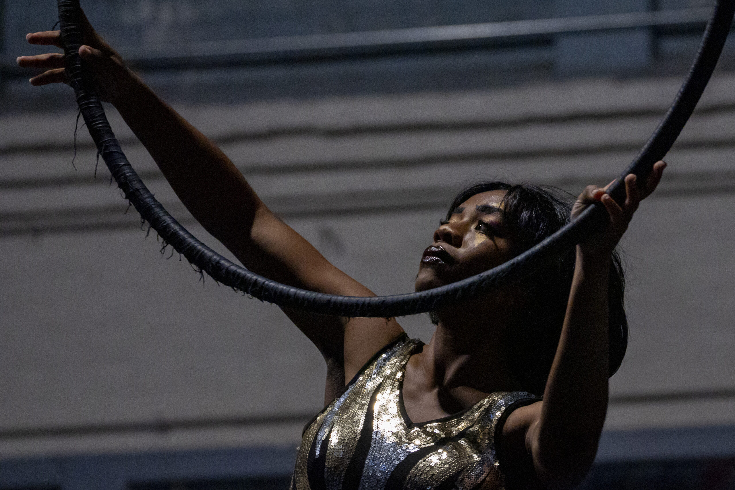 Anaya Ellis performs on a Lyra during the UKY Circus Cats Spring Showcase, “Dawn till Dusk” at Barker Hall in Lexington, Kentucky, on Friday, April 17, 2026. Peyton Tindall/The Watchdog